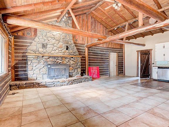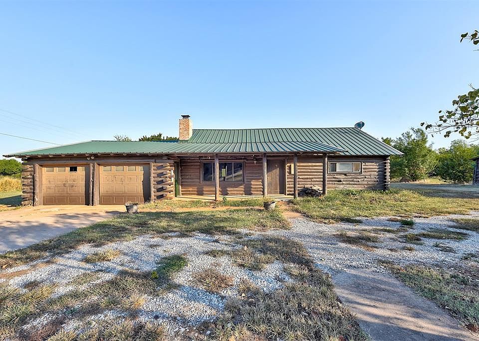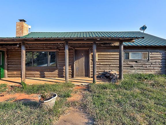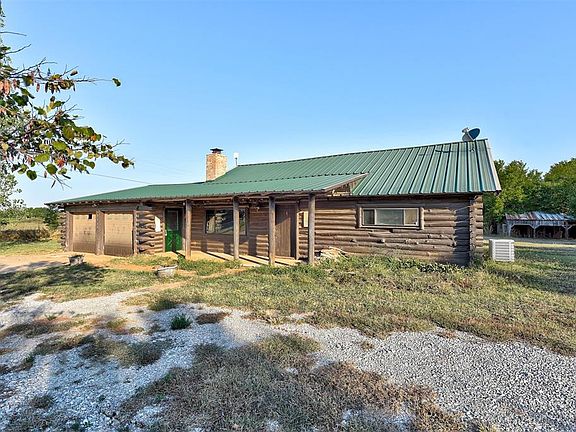 This property features a rustic log cabin situated on 4.47 acres. The cabin is an "as-is" opportunity, offering a charming, woodsy aesthetic with a natural log exterior and metal roof. Inside, there is ample potential for renovation or restoration, with exposed beams and plenty of character. Three bedrooms with 2 extra living spaces downstairs and a fun space upstairs for a reading nook, storage, or other creative possibilities. Ideal land for horses and only 6.5 miles to the Kickapoo Turnpike.