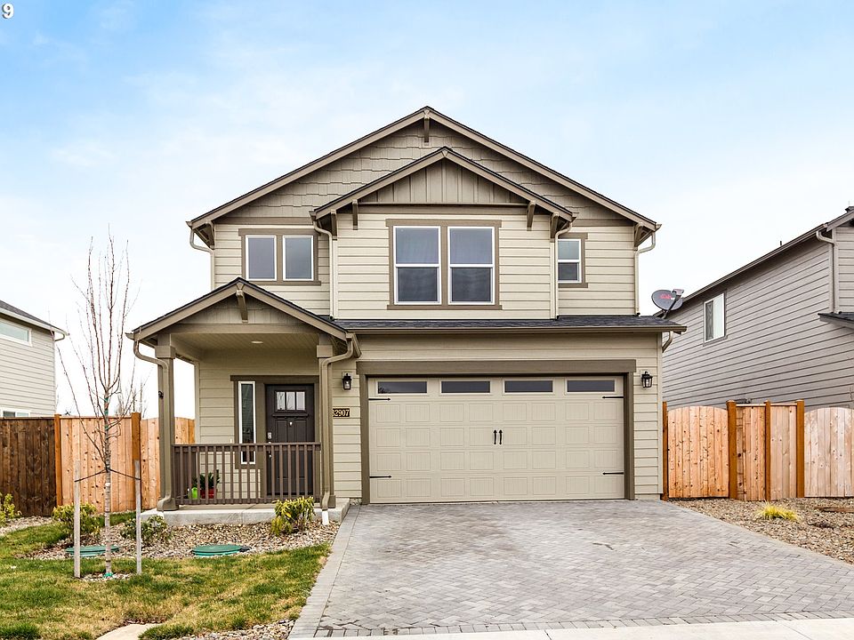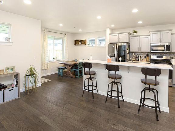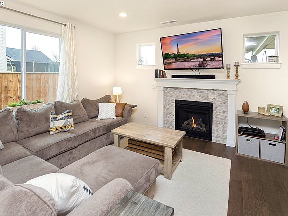Premium location in Coburg Crossing Neighborhood Fully upgraded Middleton floor plan. Quartz counters throughout, Engineered HW through main living, gas F/P, Painted maple cab w/soft close, natural stone tile, tile shower in Master w/ tile floor in all Bathrooms & laundry, SS gas appliances, large covered back patio, Gas BBQ stub, Insulated garage w/ 8' door. Full landscaping & fencing, Lap siding, A/C. Views of Coburg Hills.