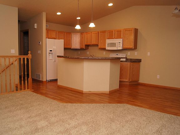 Beautiful quality-built twin home by J&L Construction, a leading builder in Fargo/Moorhead. New in 2014. Large open split-level floor plan with 1790 sq ft, double attached garage, full deck off dining room, nice spacious yard, central air, gas furnace, on a cul-de-sac, great Fargo school in Bennett Elementary and Davies High School district. Great deal at $1,350/month with many features and upgrades: - large walk-out deck - beautiful large back yard - high-end GE and Maytag appliances - side by side GE refrigerator with ice maker - self-cleaning smooth-top stove - granite counter tops in bathrooms - wood laminate and plush carpet flooring - vaulted ceilings - large foyer - Maytag washer/dryer included - brushed nickel hardware - oak wood work - holly wood style tub and 2 full baths - large walk-in master closet - premium soft tan paint - 2 coat closets, 2 linen closets, pantry - extra storage under stairs - blinds and patio door blind - full glass storm door - attached double garage with 2 garage door openers - lot of light Tenant is responsible for all utilities, lawn care, and snow removal