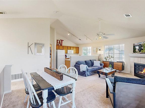 This is THE ONE! Relish in the comfort and low-maintenance living that come together in this stylish condo, featuring 1 bedroom and 1 bathroom, this home is designed for functionality, convenience, and an easy lifestyle. The main living area is open and inviting, with large windows that bring in natural light and gorgeous vaulted ceilings that highlight the home’s spacious layout. A cozy fireplace anchors the living room, making it the perfect place to relax at the end of the day. Sliding glass doors lead to a private balcony, extending the living space outdoors for morning coffee or evening unwinding. The kitchen is thoughtfully designed, with plenty of cabinetry, generous counter space, and modern appliances. Its open flow into the dining and living areas makes entertaining seamless. The primary suite serves as a private retreat, featuring a large bedroom, walk-in closet, and more natural light from a phenomenal window. The tastefully updated bathroom has plenty of space featuring a generously sized oval soaking tub and linen closet. Additional conveniences include a large laundry room and an attached garage, ensuring both comfort and secure parking. This gated community is well-maintained, with landscaped grounds and shared amenities that enhance the living experience with the Clubhouse and outdoor pool. Location is yet another highlight—just a short distance from Rotella Park, Carpenter Park, and the Thornton Crossroads & 104th Ave light rail station, making commuting into Denver and surrounding areas simple. The blends of character and charm are enhanced with the Newer Furnace, Air-Conditioning System and Hot Water Heater! This home offers move-in-ready convenience and a lifestyle that fits modern Colorado living. Come make this gem yours today!