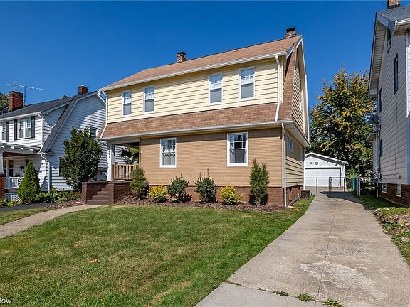 Welcome to this beautifully renovated 3 bedroom, 1.5 bath colonial located in the sought-after Cleveland Heights Cain Park neighborhood. This charming home is adorned with an extended covered porch that stretches to the back deck, providing the perfect spot for outdoor relaxation. Updated windows and AC ensure modern comfort, and a detached 2-car garage adds to the convenience and functionality. As you step inside, the entry welcomes you into a light and bright living room featuring beautifully refinished hardwood floors that extend throughout most of the home, enhancing its timeless elegance. A decorative fireplace adds a cozy touch to the living space. The kitchen is a standout, boasting custom cabinetry, quartz countertops, stainless steel appliances, and a pantry closet. Head upstairs to discover three sizable bedrooms and a spacious bathroom, completing the second floor. The lower level features a nice family/rec room with a half bath and laundry space, providing an additional area for relaxation and entertainment. Don't miss the opportunity to make this meticulously renovated house your new home, blending classic charm with modern living. Your new chapter awaits in this beautifully updated colonial.