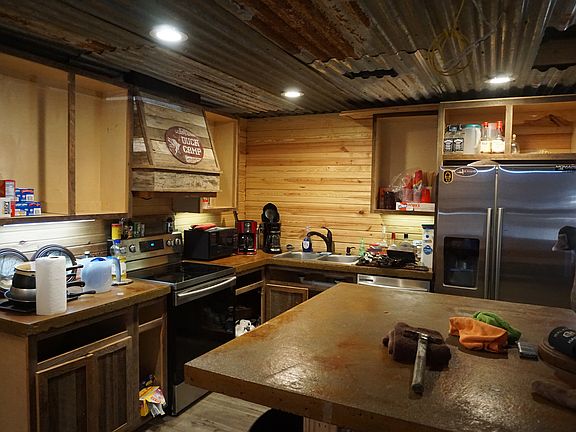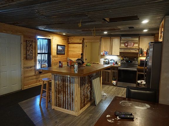 Unique, Rustic Home - This home on Highway 64 has recently been remodeled and is a perfect starter home or bachelor pad. Decorated in farmhouse style with wood walls and tin ceiling, the family room and kitchen are open and share a neat island. The master bedroom has a 1/2 bath with washer and dryer hookups, and the guest bedrooms share a bath with pretty tile shower. This property has central heat and air. A 12 x 24 building is in the back yard and a concrete.