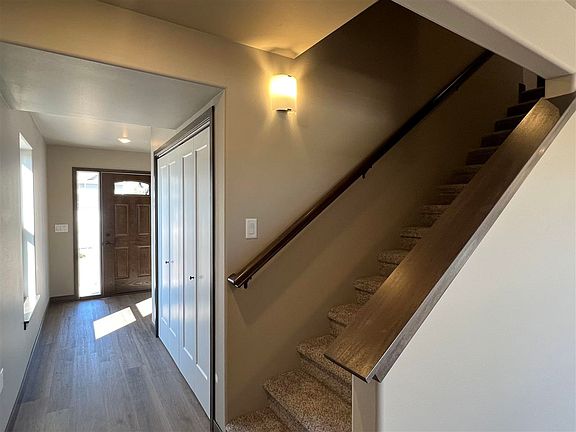 Main floor features a kitchen with island & stainless appliances, dining area leads out to the deck, gas fireplace in the living room and a half bathroom off the Garage and Kitchen area. 3 bedrooms are upstairs with a separate laundry room and a separate storage room. Primary bedroom has a large walk-in closet and a bathroom with dual sinks and shower. Bedrooms 2 & 3 share a bathroom with tub/shower. Bedroom 3 has a walk-in closet. The finished garden view lower level has a large Rec. Room, 4th bedroom and Full bath. Right Side. Photos of the actual property.