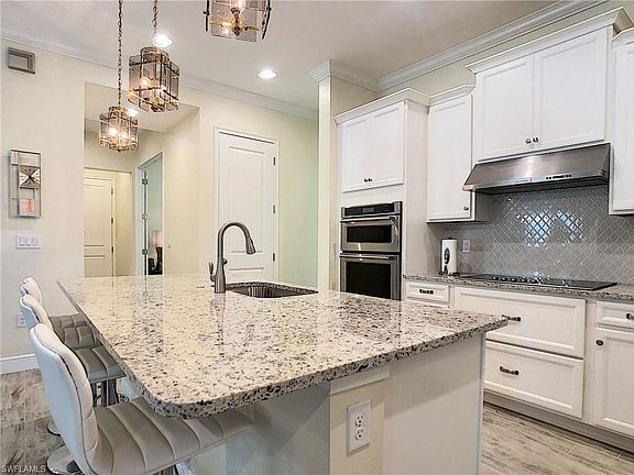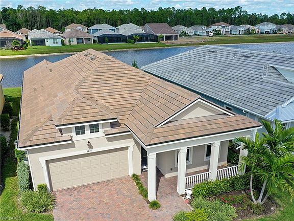 MOVE IN READY opportunity for 2017 built home in Great location. 3 bedrooms +Den with 2.5 Baths Offering spacious one level living with high ceilings, pocketing glass slider doors in the Great Room and generous walk-in master closet, this popular open concept 'Banyan' plan is situated on an oversize lot with a Northern Lake view. Compass Landing is a secluded gated community in Naples featuring deep lots with low association fees. Conveniently located off (951)Collier Blvd. this community gives you a central location to all the major amenities Naples has to offer like Mercato, Waterside Shops, and Gulf Beaches. This home is beautifully appointed with an amazing array of UPGRADES including stainless steel appliances, wall oven, granite kitchen counter tops, 42 inch cabinets, tile throughout main wet areas, upgraded carpeting in bedrooms, tray ceilings in the foyer, Crown mouldings in Main areas and 5 1/4 inch baseboards throughout the home. The exterior features a nicely landscaped lot and includes brick paver walkway, driveway, & recently expanded and enclosed brick paver lanai. This beautifully designed home scenically overlooks a large lake. It is a must see!!!