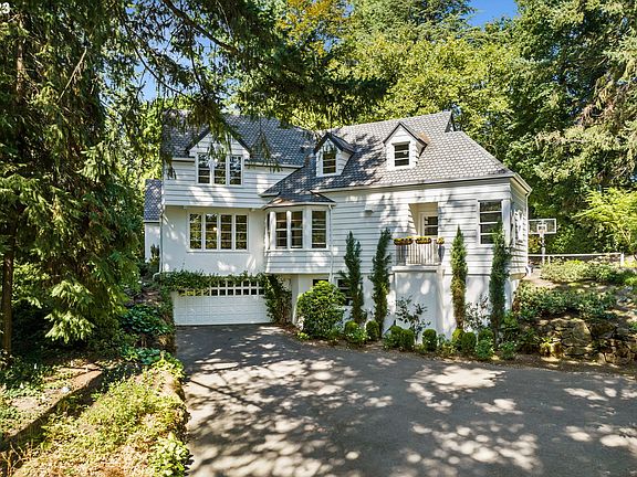 Perfectly perched above the Fairmount loop, this secluded sanctuary offers peace and tranquility rarely found in the city. From the moment you pull up to the expansive driveway your heart will surely be captivated by the magical setting and enchanting architecture. This Roscoe Hemenway masterpiece has been skillfully reimagined to satisfy modern lifestyle demands while maintaining timeless character and charming details. Hosting friends and family is an easy feat with expansive formal living and dining spaces, while the homes intangible sense of warmth and comfort allows for causal everyday living. Cooking is a joy in the renovated Gourmet kitchen flaunting quartz countertops, custom cabinetry, chic light fixtures, top-of-the-line appliances, a walk-in pantry, fresh paint, a cozy eating nook, and walls of new windows flooding the space with sunlight during the day and magnificent sunset views in the evening. The main level primary suite boasts French doors leading to the backyard haven, three walk-in closets, and a spa-like bathroom fit with an infrared sauna, washer and dryer, two vanities, two separate toilets, and a stunning walk-in shower. The incredible mahogany staircase leads you to the upper level featuring three expansive bedrooms with bright hardwoods, romantic millwork, and huge walk-in closets. The backyard oasis, professionally designed by Huntington & Kiest, features a large patio, level grass yard, lush landscaping, a basketball court, gardening shed, and a custom gas burning fireplace perfect for roasting marshmallows under the starry night. The lower level basement offers endless storage and opportunity. Enjoy walking or biking the Fairmont Loop, hiking the beautiful trail system, playing at Council Crest or Portland Heights Park, and being mere minutes from the zoo, downtown venues, shops, top-rated schools, high tech and major hospitals. [Home Energy Score = 1. HES Report at https://rpt.greenbuildingregistry.com/hes/OR10191914]