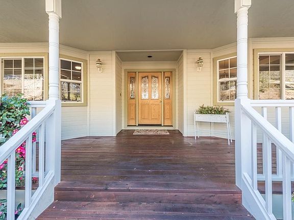Rare country gem will not disappoint & offers tremendous value! As you walk up to the covered front porch & through the door way into the slate floor entry you will feel at home. You will love the beautiful living room with hand scraped wood floors open to the kitchen. Granite slab counters, simple oak cabinetry, stainless appliances & walk in pantry finish off the kitchen. Spacious mud room w/laundry off the breezeway add a nice touch. Private master retreat with coffered ceilings & french doors leading out to your covered back patio. Just when you thought it couldn't get any better you travel downstairs which offers a bdrm, full bath, office space & bonus area with delightful stacked stone gas fireplace & built in wet bar, truly an entertainers delight! As you stroll outside into your resort-like back yard featuring sparkling built in pool, spa, & patio decking. Outstanding energy efficiency with your OWNED 6KW solar system. Lots of opportunity w/detached guest home w/private patio.
