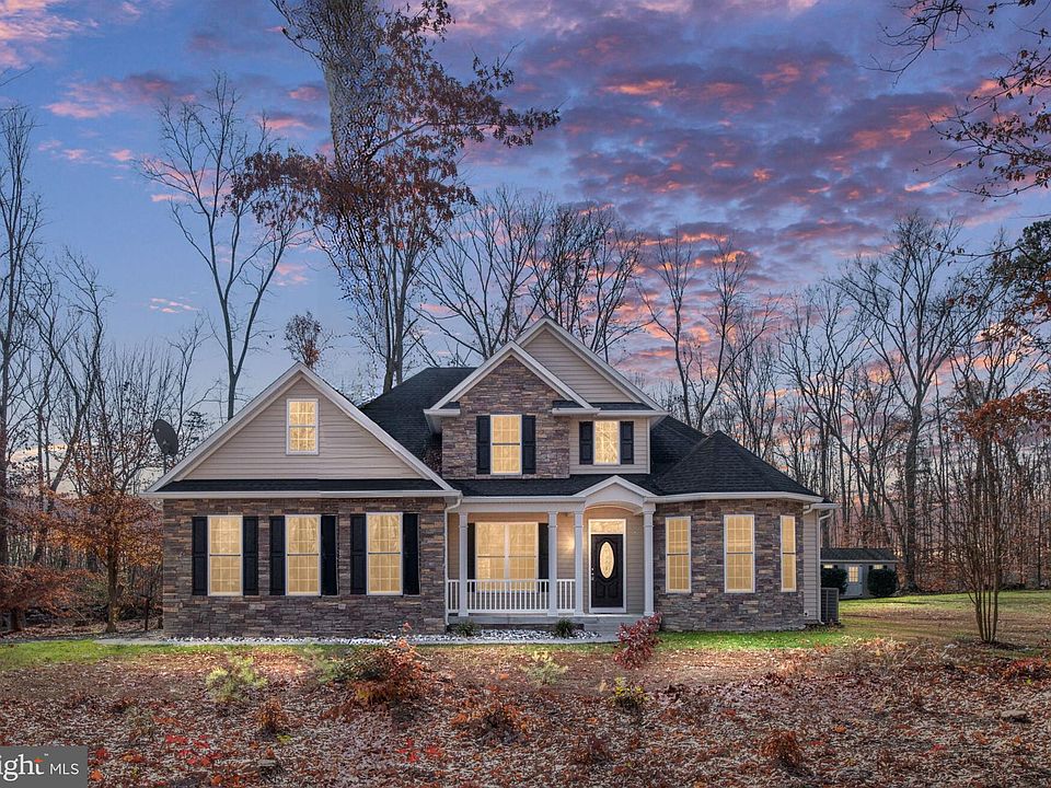 Set on 10 private acres, this home offers a peaceful retreat with easy access to both Bealeton and Stafford. The open floor plan features a spacious two-story family room with a stunning stone fireplace, creating a welcoming focal point. The eat-in kitchen boasts granite countertops, upgraded cabinets, and plenty of space for casual dining. The main-level primary bedroom includes a private backyard entry and a luxurious primary bath. The formal dining room is perfect for hosting gatherings, while the office provides a quiet space for work or study. Enjoy outdoor living with a charming front porch, a stamped concrete patio featuring a cozy firepit, and a screened-in side porch offering a tranquil space to relax. The side-load garage enhances the home’s curb appeal and includes a workbench, along with 260 feet of additional storage space, making it ideal for tools, equipment, or hobbies. This property offers the perfect blend of comfort, privacy, and convenience—inside and out. Whether you’re enjoying the serene surroundings or entertaining guests, this home is truly a sanctuary.
