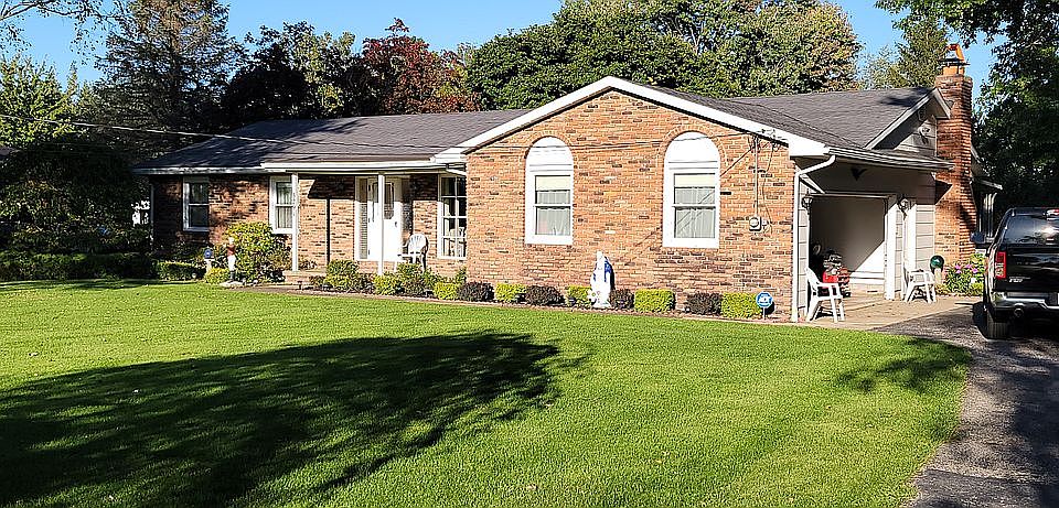 Brick Ranch home with 2 car heated garage, and 220 electrical. Large Living room that leads to dining room, and open kitchen Family room with full wall brick fireplace and access to enclosed season room. Home was originally 3 bedroom, was converted to a two bedroom, with an oversized Master suite, double closets. Could easily recover 3 bedrooms if needed. Newer flooring throughout. All this on nearly an acre. Very serene setting. Appliances stay. Septic report attached. City Water. Very well maintained home.