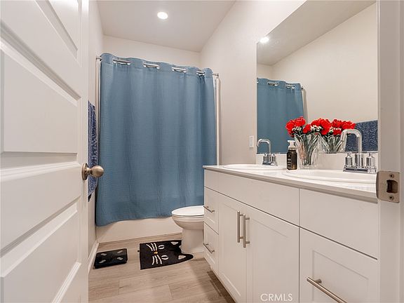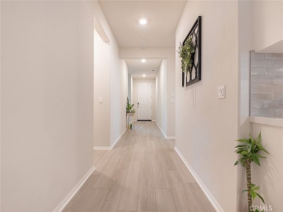 BUILT IN 2024! PAID OFF SOLAR + 4 BEDROOMS + 3 BATH + LARGE BACKYARD This home is nestled at the end of a cul de sac and within minutes of the i215 and shopping and dining. As you enter the home you'll notice the spacious 9 foot ceilings upgraded luxury vinyl floors. To your right you'll find 2 bedrooms plus a full bathroom with double sinks and a shower/tub combo. Down the hall You'll find the 3rd bedroom, garage access, and a large laundry room. The living space is nice and open perfect for entertaining and has tons of natural lighting. The white upgraded kitchen cabinets and white ice quartz countertops give tons of storage and space for the chef in the house. You'll also notice a spacious walk in pantry at the corner of the kitchen. The living room and dining area are spacious and offer plenty of space to entertain guests. The primary bedroom is off the main living area and offers a spacious walk in closet, a private primary bathroom with double sinks and a shower. Within the community you'll find walking trails and a playground perfect for little ones. Schools, stores, and freeway access are all within minutes from this home making it a perfect location for every day living.