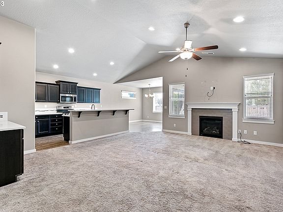 Welcome to this inviting home nestled in the picturesque town of Coburg, Oregon. This delightful residence seamlessly marries modern elegance with everyday comfort. Featuring 3 bedrooms and 2 baths, it provides ample living space and an array of appealing amenities. Upon entering, you'll be greeted by an open and airy floor plan with vaulted ceilings that create a sense of spaciousness. The heart of the living area centers around a charming gas fireplace, perfect for cozy fall evenings. The kitchen is a chef's dream, equipped with stainless steel appliances and the quartz countertops provide plenty of workspace, making meal preparation a breeze. An adjoining eating bar offers a casual spot for morning breakfasts or quick snacks. Situated near a lovely park, this home offers a perfect balance of tranquility and accessibility. Enjoy the nearby green spaces, ideal for outdoor activities or simply unwinding amidst the beauty of nature. Additionally, the property boasts easy access to the freeway, ensuring a convenient commute to neighboring towns and cities.