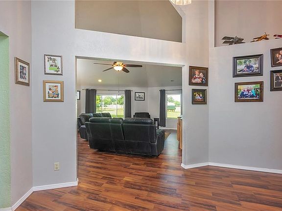 Country quiet living with all the conveniences of the city! This spacious home features soaring vaulted ceilings throughout, allowing lots of natural light and splendid views. Kitchen is recently remodeled with granite, new appliances, flooring, light fixtures and plenty of storage space. Master bedroom has new carpet, walk-in closet and an updated bathroom. Completely cleared acreage w/ storage buildings, storm shelter, rear and side fencing w/ area ready for horses and has a chicken coop! Recent upgrades include: new windows, well pump, ceiling fans & light fixtures, paint and flooring throughout the home. Schedule your showing to come see this lovely, wooded property today!