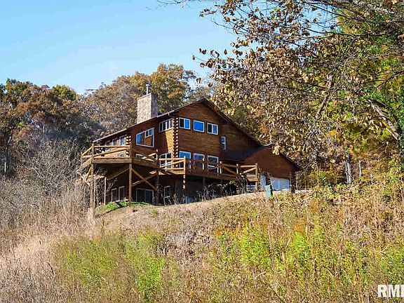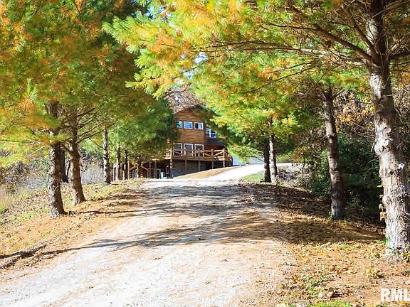 This stunning, 2 bedroom, 3 bathroom, custom built log home sits on 22 m/l sprawling acres and is bordered by the Shawnee National Forest. Windows galore in this home allows for amazing views of the property, stocked pond, and surrounding forest. The warmth of this home is evident throughout in the flooring, stunning etched custom tile and 3 beautiful fireplaces. Let's not forget the beautiful pool and relaxing hot tub with surrounding deck. A spacious 2-bedroom cabin sits down near the pond and would make a great place for hunters, family and friends who come to visit. This is truly a peaceful paradise in the country. Just 10 minutes from Cape Girardeau, MO! Don't let this dream home slip away. Call for your private showing today! None