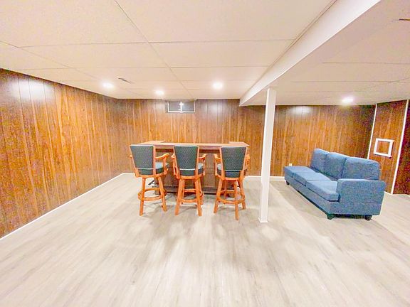 The house is fully furnished to include two fully furnished and decorated bedrooms. The master bedroom has a newly purchased queen bed. The second bedroom has a twin-over-full bunk bed. It also comes with a trundle. The basement has a sofa bed. The home can easily allow 7 people to sleep. There is a large furnished living room (with a very nice and large sectional sofa, a coffee table, and a TV) and a dining area (with a dining table and benches), and a fully equipped kitchen with all the utensils, pots, pans, etc. There is also a finished basement with a nice bar, a sofa bed, and a sofa. There is a laundry room with a drier and a washer. It comes with a garage as well. It has a fully fenced backyard perfect for your dog. Available after: 9/1/2025. Everything included! The house is fully furnished to include two fully furnished and decorated bedrooms. The master bedroom has a newly purchased queen bed. The second bedroom has a twin-over-full bunk bed. It also comes with a trundle. The basement has a sofa bed. The home can easily allow 7 people to sleep. We can provide bedding items. There is a large furnished living room (with a very nice and large sectional sofa, a coffee table, and a TV) and a dining area (with a dining table and benches), and a fully equipped kitchen with all the utensils, pots, pans, etc. There is also a finished basement with a nice bar, a sofa bed, and a sofa. There is a laundry room with a drier and a washer. It comes with a garage as well. It has a nice backyard. All utilities are included, water, sewer, gas, electricity, garbage, and internet. However, tenants needs to do lawn care and snow removal. We do require background check and no eviction history. Applicants' credit score must be at least 669. Non shed dogs will be considered. This is a unique property ready for the right tenant/tenants.