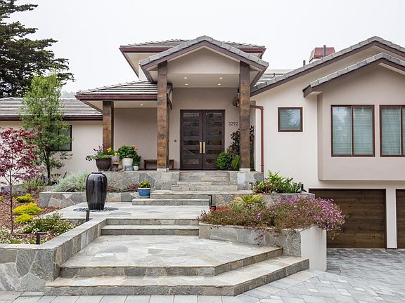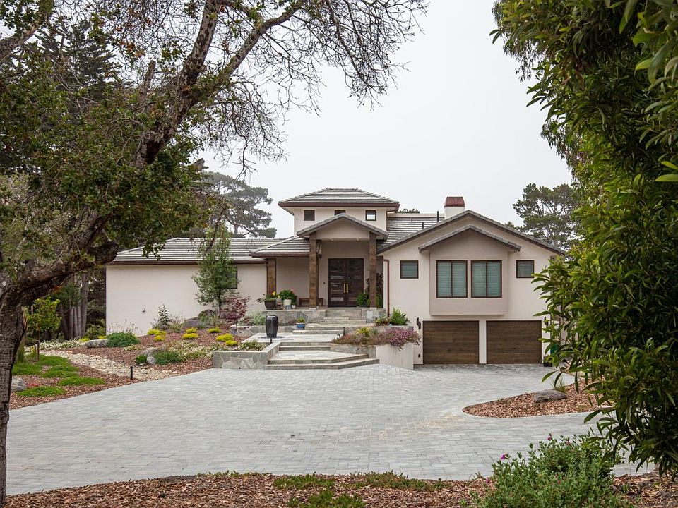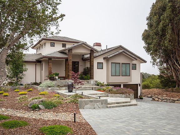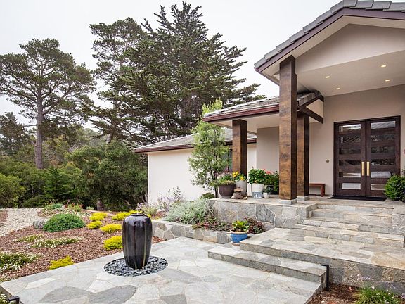 This is a gorgeous one year old (technically remodeled to new) soft contemporary on a marvelous street. Martin Road is a short, peaceful, quiet street that dead ends at an entrance to Mission Trails park (so 15 minute walk to town!). The home is stunning with open rooms, soaring ceilings, big windows, lots of light. The primary bedroom is on the main level with a super chefs kitchen, dining room with views, living room with built-ins and dramatic fireplace and 2nd bedroom/office. Below are two bedrooms and an oversized den and laundry room. 2-car garage and storage. PLUS, an amazing large rooftop deck with outdoor kitchen, firepit, semi-enclosed, heated dining alcove and views over the greenbelt to the ocean. There are top of the line appliances and finishes throughout, and modern warm colors. 3900 square feet, 4 bedrooms, 3.5 baths on one private acre nothing much like this has been available in Carmel. Great entertaining house. Don't miss this very special home.
