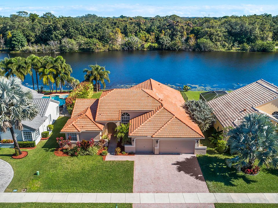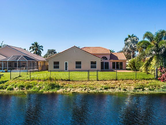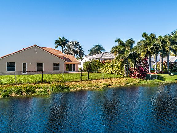 Spacious waterfront home in The Ridge on Nob Hill features 4BR (triple-split), 3BA, 3 car-garage, with tranquil and water and preserve views. Open-style floor plan w/ lots of natural lighting, formal living & dining areas, architectural niches, volume ceilings, upgraded kitchen w/ granite, stainless steel appliances, breakfast bar and area, open to Family Room. Master suite features 2 walk-in closets w/ built-ins, vaulted ceiling, sliding door access to private patio area, and an on-suite with spa-tub, dual sinks, and separate shower. Tile throughout, hurricane shutters, impact Cabana Bathroom door, fully fenced yard, community pool, walking trails, near Tree Tops Park, Westridge Open Space Preserve, Pine Island Ridge Natural Area, major highways and great schools.