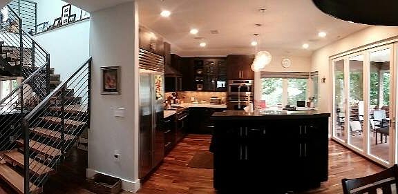 Nice West Highlands pop top completed in 2014. Corner lot between Tennyson Shops and Highland Square - walk to either. Extensive, carefully matched brickwork. Open floor plan with custom metal staircase below dramatic skylights. Gourmet kitchen with curated mix of Sub Zero and Viking appliances. Giant 8 ft. quadruple bi-fold doors open kitchen to covered porch. Quartz counters throughout including three wet bars. Spa-like master bath with steam shower, freestanding tub and radiant heat. Home theater, whole home audio with ceiling speakers and concealed sub-woofers. Remote control (phone app) of thermostats, front door lock, lights. Three bedrooms up, two down, main floor office. High end finishes throughout, not a spec home.