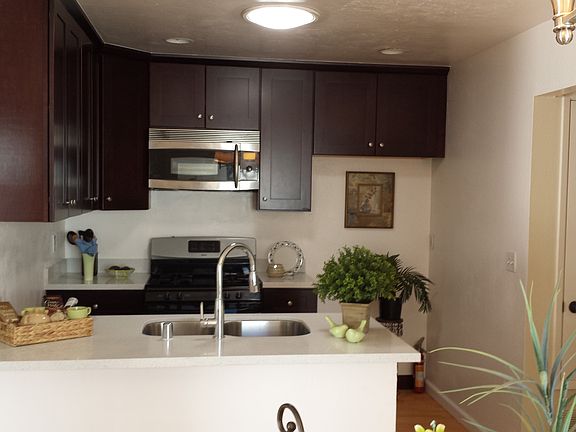 Upgrades galore. New-Kitchen cabinets, quartz countertop, garbage disposal;Bathroom vanities, flooring, mirror and light;Garage with new roof, door, opener, electric panel and water heater. Fresh paint. Double pane windows. Drought resistant yard. Minutes from 880 & 84. Walk to parks & child care. Garage completely redone. Refrigerator, Washer and Dryer to be taken 'As Is'.