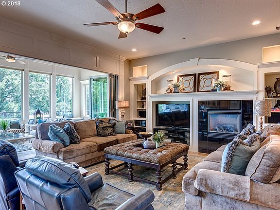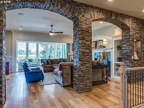 Stunning home on 5 peaceful acres in gated community. 5600+ SF has custom features galore incl elevator. Main floor - stone arches w/art niche, great room w/fireplace & built-ins, sunroom w/wet bar, oversize gourmet kitchen, dining rm w/blt-in bench, office w/built-ins, master suite + addl BR w/HUGE closet. Lower level w/lg fam rm, bedroom + sep. living qtrs w/kitchen. Deck, covered patio, 3 garage + HUGE separate shop. Must see!