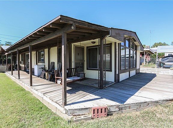 Great location on this 2 bedroom 2 bathroom single story manufactured home on a permanent foundation located in Lake Elsinore. This 1440 square foot double wide was built in 1978 and sits on a large yet easy to maintain 6534 square foot lot. The home has a very large front yard with large shade tree that leads up to the front deck. The wrap around wood deck provides a great sitting area at this home creating a private park atmosphere when combined with the front yard. The house itself has a very open floor plan with the front door opening into the living room which has a ceiling fan and wood panel walls. Beyond the living room is the dining area complete with chandelier and build in curio. The kitchen has a large breakfast counter with double built in ovens, a cooktop stove and a ton of cabinet and counter space with sliding door access to the yard accessible from the eating area. There is also an additional family room located just beyond the breakfast counter that features built in shelves and cabinets. Both bedrooms are suites with the first bedroom providing access to the laundry room through the connected bathroom that has a tub and shower combo . The master bedroom is at the rear and features an enormous master bathroom with large soaking tub with separate walk in shower and a vanity with dual sinks. This home has an amazing location located just off the 15 freeway with easy access to shopping, dining and entertainment.
