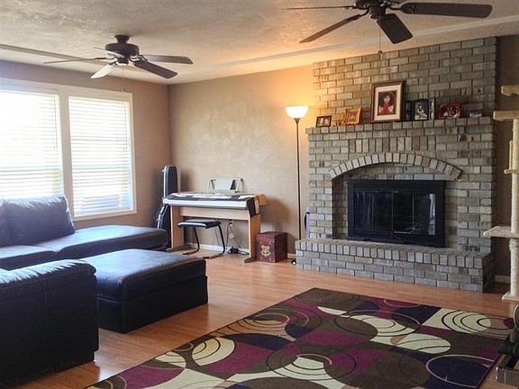 Welcome to this great 3 bedroom/ 2 bathroom home in East Medford. This home is 1668 square feet on .16 acre corner lot. Enter the home into the spacious entry that splits off to the rest of the home. The living room is large with coffered ceiling, dual ceiling fans and a brick fireplace. The kitchen has stainless appliances new counter top with breakfast bar and hardwood floors. The master bedroom is spacious with large windows open to the back yard. It has a large walk-in closet and master bath. The fully fenced back yard has a large deck off the dining room. This home has a 2 car garage, laundry room, new laminate flooring, includes all window treatments and stainless refrigerator.