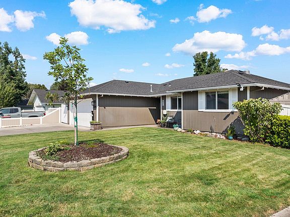 Updated E Medford home! This 3 bed 2 bath 1668 SQFT home sits on a .16 AC corner lot with a fully fenced backyard. Recent updates include: High grade carpet, laminate flooring, roof, water heater, kitchen appliances and updated bathrooms. The home boasts an open floor plan that is very spacious from the moment you walk in. The living room is large with a coffered ceiling, dual ceiling fans, and a brick fireplace with a wood stove insert. The kitchen has stainless appliances new countertop with a breakfast bar and hardwood floors. The master bedroom is spacious with large windows open to the backyard. It has a walk-in closet and en-suite bathroom. The fully fenced backyard has a large deck off the dining room. There is also a 2-car garage with plentiful storage and room for a small RV or boat parking on the side of the house.