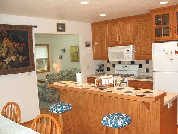 Nestled in the pines, this like new home will certainly provide a fun get-away place. The home was built by Van's in 2005. The sunroom in the back part of the house features cedar walls and is a great room to enjoy the landscape and wildlife one can view (this room has electric heat).