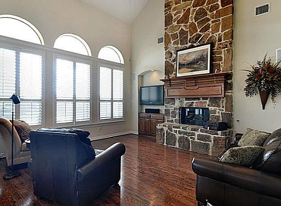 Fantastic home in Pearson Farms on one the best lots with views of pond! 2 Story LV Rm with Wall of Windows looks upon Outdoor Oasis. Salt Water Pool & Spa, Covered Patio, & Grass Area. Gourmet Kit w SS App,Gas Ctop, Granite & Tile. Enjoy serene sounds from Pool in Master Suite that includes stylish master bath w furniture piece sinks & Over-sized Jetted Tub. Nice-sized Formal Areas. 3 bdrm & game rm. Wood Flrs, Plantation Shutters. Must See!