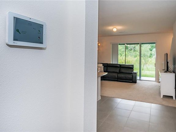 One or more photo(s) has been virtually staged. Union Park Townhomes! Beautiful, brand new townhome located in Wesley Chapel! Stunning water and conservation views from every room in this brand new home. Fabulous maintenance free community, includes smart system for locks, ac unit and security. Two story, all concrete block constructed townhome with open concept floor plan downstairs that includes a large open gourmet kitchen, gorgeous white cabinets, upgraded stainless steel appliance package, large granite island and counter tops, walk in pantry, storage closet, large powder room, spacious family room with triple sliding doors that overlooks a covered, private lanai with conservation and pond views. Custom blinds for windows and sliding doors are included. The second floor includes a spacious master bedroom with conservation and pond view, two walk in closets, en suite bathroom with dual sinks, two additional spacious bedrooms with water views share a full bath, laundry closet with french doors upstairs, brand new washer and dryer included! One car attached garage, four car driveway. Maintenance free upscale community, resort amenities, club house, fitness center, two pools, park, sport court, nature trails, tot lot all within walking distance from your home. Wesley Chapel offers it all close by including excellent schools! Schedule your appointment today or you will miss it!!!