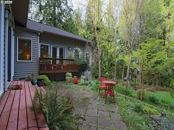Custom one level home on beautiful wooded, private lot in desirable area of Scappoose. Open concept with gorgeous views from every room. A true oasis in the city! Master suite includes soaking tub and french doors that open to patio. Lovely sprawling yard. RV parking as well! Truly a must-see!