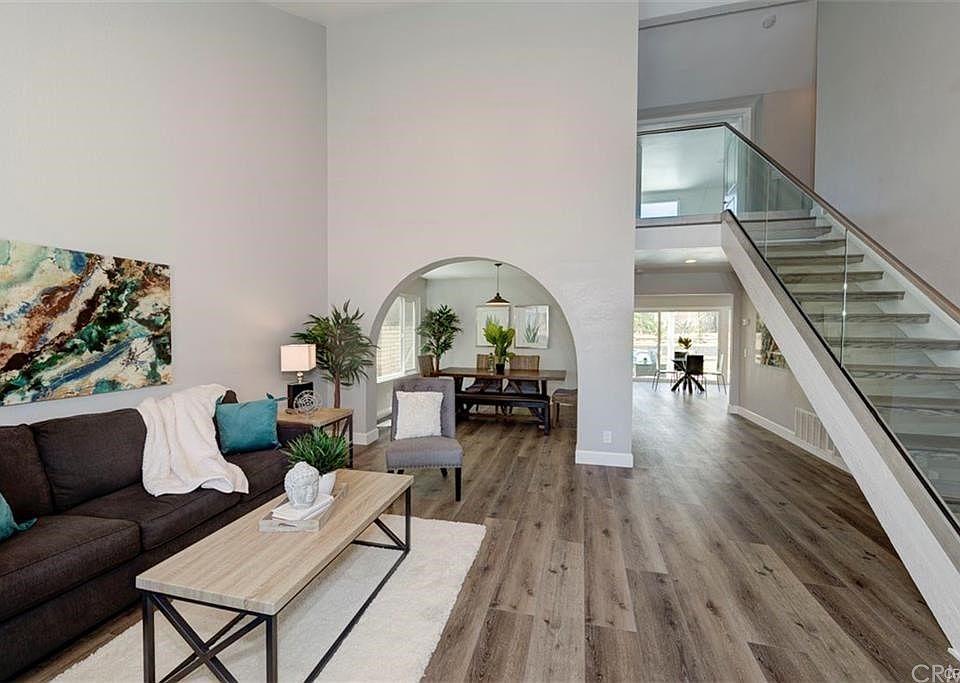 Welcome home to your beautiful, completely remodeled & upgraded 4-bedroom, 2.5-bathroom, 2,442 sq. ft. home located in lovely Sea Canyon, one of the most desired neighborhoods in Dana Point. Through your custom, modern, double front doors, enter your formal living room with vaulted ceilings and transition through a graceful archway to your formal dining area. Continue through to your second living area and beautiful kitchen complete with all white shaker cabinets, quartz counter tops, marble backsplash and stainless-steel appliances. Enjoy entertaining your guests from your upgraded wet bar open to kitchen, dining and family room. Cozy up by your sleek, stacked-stone fireplace in the family room. Downstairs is complete with laundry, half bath and attached 2-car garage. Continue up your new, modern staircase with glass and metal handrail and enter through double doors to your grand, main bedroom, complete with sitting area and fireplace, three closets and private deck with peek-a-boo ocean view. The fresh, bright, remodeled main bath has a very large walk-in tiled marble shower and double-sink vanity. The upper floor is completed by three more bedrooms and a full bath. Floors are rich, luxury vinyl throughout and new windows and doors were installed in summer, 2019. This wonderful home sits on a quiet street in the back of Sea Canyon and is close to all that Dana Point has to offer. Gorgeous beaches, restaurants, world-class resorts and world-famous Dana Point Harbor are all within minutes of this desirable property.