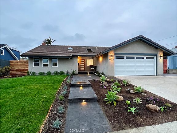 Welcome to Staysail Drive in the highly sought after Dana Knolls neighborhood. This single level 4 bedroom 2 ½ bath pool residence has been completely rebuilt and upgraded to the max. The property features a front walkway with lighted pavers leading to a beautiful mahogany front door. When you enter the home, you will be impressed with the high ceilings, abundance of natural light, wide plank hardwood flooring and upgraded finishes featuring recessed lighting, ceiling fans and maximum storage. The spacious great room offers open concept living, including dining room, living room with custom fireplace, luxurious powder room and an open kitchen with a large island. The kitchen features custom shaker cabinets, floating shelves, stainless steel appliances, quartz countertops and pendant lighting. Large drawers and cabinets with soft close hinges and drawer glides are highlighted with under cabinet lighting. The large island features a KitchenAid dishwasher, large sink with an in-counter garbage disposal button, a built-in trash and recycle drawer, beverage center and seating for 4. The 12’ multi slide patio doors open to the west facing private entertainer’s backyard features a swimming pool with spa and a newly resurfaced low maintenance patio, fire pit, and plenty of space to entertain. The primary bedroom, located off the main entry and split from the additional three bedrooms, features three large closets and plenty of space for a king sized bed. The en-suite bathroom, featuring a large walk in tiled shower and a double sink vanity, is a stunning private retreat. Adjacent to the entry is a bedroom with dual entry making it the perfect office space or media room or bedroom. Two additional bedrooms share a second full size bathroom with a bathtub. An oversized 2 car garage with new garage door features additional storage, carpeted laundry area and easy attic access where you will find the new energy efficient furnace. This home was completely remodeled, with permits, leaving no detail untouched including PEX piping throughout the house, new dual pane windows, new exterior and interior doors, new electrical wiring, recessed lighting throughout and ceiling fans. A quick 10 minute drive to Dana Point Harbor and Doheny Beach and you can enjoy all that this beachside community has to offer. Conveniently situated with easy access to the 5 and 73 Freeways this home is the perfect place to enjoy all this award winning town has to offer.