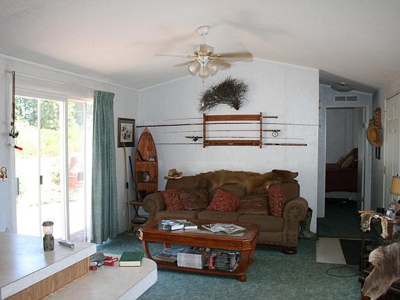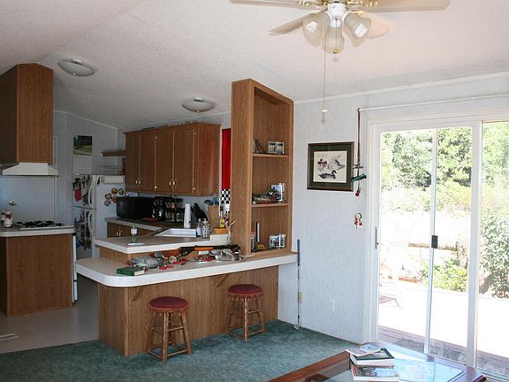 Spacious single wide manufactured home on nearly 10 acres. 2 bd/2ba split floor plan. Large deck area, handicap ramp, 2 car detached garage. Well cared for home and property. Wooded lot with cedars, pines and oaks also manzanita borders front of property which adds privacy.
