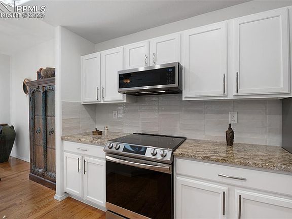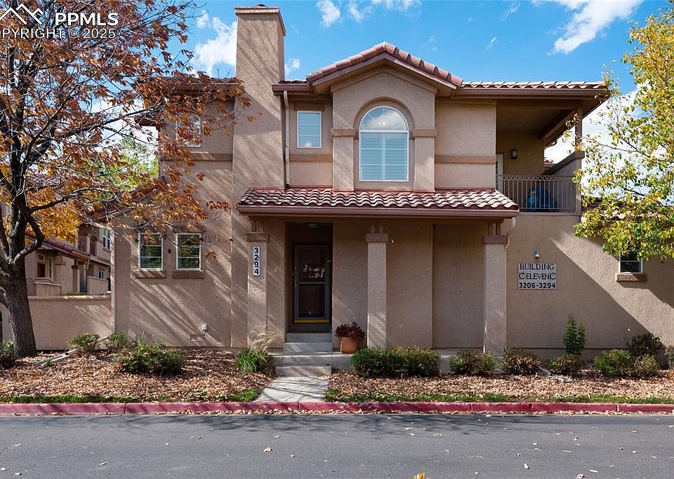 Beautiful Courtyards at Quail Lake condo offering a bright and sunny two-story layout. This move-in-ready gem features a newly remodeled kitchen and updated bathrooms, showcasing modern finishes and thoughtful upgrades throughout. Great curb appeal and beautifully landscaped surroundings welcome you home to a quiet community with a responsive HOA. Enjoy easy access to Cheyenne Mountain Zoo, scenic Quail Lake, shopping, I-25, and downtown restaurants and entertainment. The complex sits in an ideal location with a picturesque backdrop of Quail Lake Road’s 28.5-acre public open space and trail system. Inside, the open floor plan includes a comfortable living room with a cozy gas fireplace, dining area, and gleaming wood floors throughout. Beautiful wood shutters and abundant natural light enhance the home’s warmth and charm. The sliding door opens to a private walled patio, perfect for outdoor dining and relaxation. Upstairs, generous-sized bedrooms provide comfort and space, with the primary suite featuring a newly updated en-suite bath, while the secondary bedroom has a private balcony! A convenient upper-level laundry closet makes everyday living easy. Extensive updates include fresh interior paint, a new Rheem furnace with humidifier, new Rheem hot water heater, and new Maytag washer and dryer. The kitchen shines with new stainless steel appliances, refinished cabinets with new hardware, a Blanco undermount sink, granite countertops, full porcelain tile backsplash, and new Delta faucets. Additional highlights include new granite countertops and porcelain sinks in both upstairs baths, new lighting fixtures, new shutters and cordless blinds, new toilets, upgraded door hardware, and refreshed patio landscaping with new artificial turf and rock. All systems have been professionally inspected and are in excellent working order—this beautiful home is ready for you to move right in.