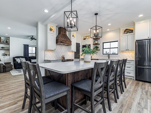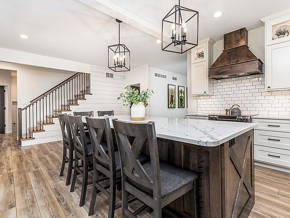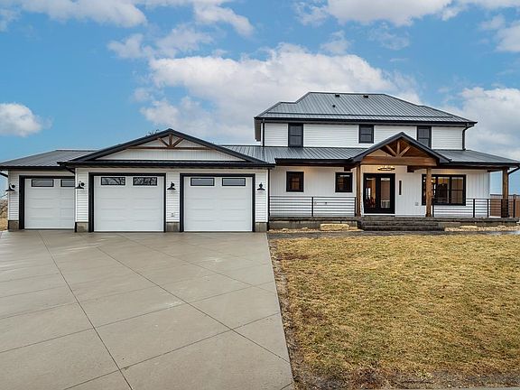 Sitting on 5 acres of property, this complete rebuild of a two story 1900’s farm home, showcases the modern farmhouse vibe with plenty of natural light and hardwood floors to accentuate the white walls and shiplap features. Quartz countertops, complete birch custom cabinetry throughout, walk-in closets, main floor laundry room, stainless fingerprint resistant appliances and custom stamped concrete are only a few of the amenities that set this property apart from the rest. Directly adjacent to a hard-surface road and only 1 mile from Dyersville City limits, this 5 bedroom, 2.5 bath, 3-car attached garage is only the beginning of this one-of-a-kind property. Situated steps from the home is a 4,000 sq. ft. shop, rebuilt in 2021/2022. This place is a contractor's dream featuring 2 overhead garage doors, steel interior siding, spray foam, LED lighting and large windows. There is also in-floor heat ran, a full bathroom, wet bar and laundry ready to be hooked up. The property includes a 4,000 sq ft steel pole building, barn, grain bin, plenty of hard surface areas and large playground area. Soak in the beautiful Iowa sunsets on the fully covered front porch or enjoy entertaining on the large, custom stamped concrete patio, complete with a fire pit and two-sided privacy fence.