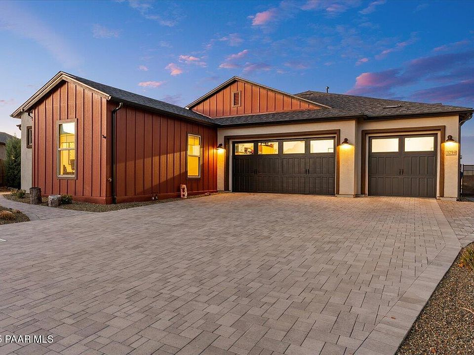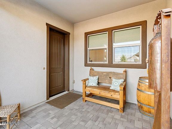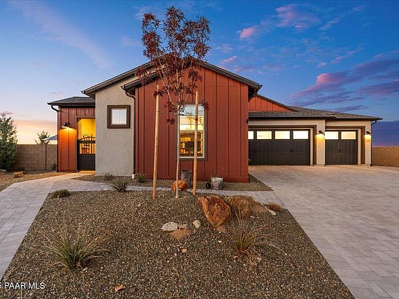 Experience modern mountain luxury in this stunning 2023 Granite Dells view residence, bursting with over $200K in premium upgrades. This sought-after Grace floor plan offers 2,889 sq. ft. of refined living with 3 bedrooms, 3.5 baths, and a flexible formal dining room or den. A gated front courtyard sets the tone with its spacious private patio and complete privacy. Inside, an inviting foyer that flows effortlessly into the grand great room with a cozy fireplace and large windows that create a dramatic and welcoming space. The designer kitchen is built for both everyday living and entertaining on a large scale. Features include an expanded island that comfortably seats nine, stainless steel appliances, a gas cooktop, convection oven, granite counters, and extensive cabinetry throughout. A separate morning kitchen offers even more convenience with a prep sink, wine refrigerator, and generous walk-in pantry. The split bedroom layout provides privacy, while luxury vinyl plank flooring, upgraded finishes, and thoughtful built-ins elevate every space. Outdoor living is a WOW, with an expansive covered paver patio and professional landscaping designed for low-maintenance enjoyment. Situated on 1/3 of an acre for plenty of outdoor living space and entertainment. Additional highlights include a 3-car garage, included washer, dryer, and refrigerator, and energy-efficient construction for year-round comfort. Located in The Dells--one of Prescott's most desirable communities--this home blends style, function, and quality craftsmanship in an unbeatable setting.