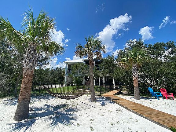 Canal Waterfront home on Ono Island is ready for you and your boat on your own private dock. This amazing 4 bedroom / 3.5 bath home is spacious with an open concept floor plan and 12 foot ceilings. Walking into the house the first thing you'll notice is the large front porch facing the intercoastal. Once inside, you'll notice all the oversize windows facing out the back of the house that lead out to another large porch that spans the entire width of the house and looks out at the dock and canal. You will have plenty of room in a large living room and spacious dining room. The Kitchen has granite counter tops with a large island that can seat 4 or more of your family and friends. The master bedroom is large and features it's own walkout to the back porch. With two his & hers walk-in closets and a large en-suite bathroom, you'll enjoy a great nights rest. When you're ready to relax, there's a wet-bar and beverage fridge to make a refreshing beverage. There's also plenty of room for guests and family with two large bedrooms upstairs, and another bedroom downstairs with it's own en-suite bathroom. There have been many new updates and renovations have been done recently including new paint (in and out), flooring, stainless appliances, lighting, etc. There's also a large Laundry Room and space for 4 cars in the covered parking area. There was no house damage or flooding from Hurricane Sally, and the house has a built-in 40amp Generlink connection that can power everything in the house with a 10k generator.