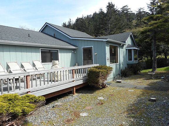 Inviting and comfortable home with open floorplan situated on a secluded lot with Peek-a-boo Ocean View. Fantastic southern exposure on one of two large decks.Large workable lot with room for additional outdoor buildings.Parking for RV and boat.Two newly roofed sheds.72' of North deck off bedrooms.Spacious kitchen with breakfast bar open to living room.Lower bedroom w/pellet stove perfect for party room.