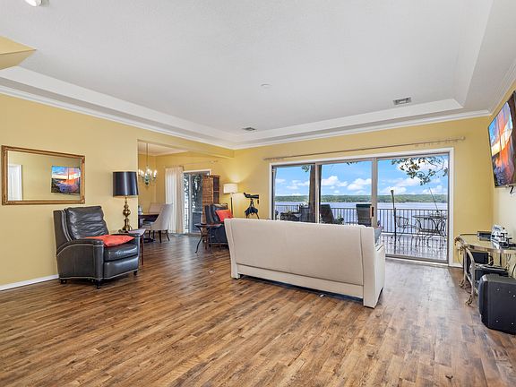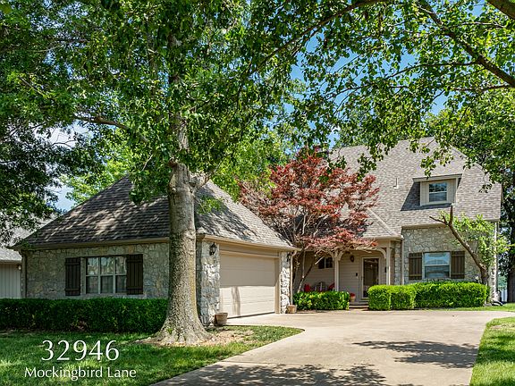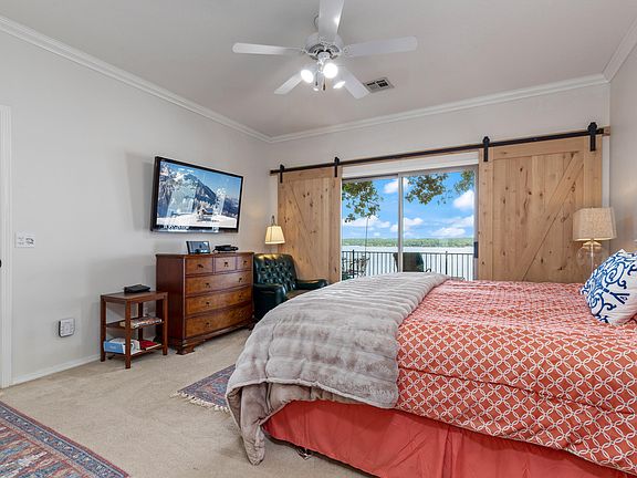 This charming lakefront home has an English Cottage style curb appeal and spectacular lake views! Main level offers separate dining area off kitchen, half bath, primary suite and living area has a fireplace and walk out to lakeside deck. Upstairs offers second living area/game room, two bedrooms and two baths. Large 2 car garage with separate golf cart entrance. Lakeside deck runs the length of home and offers plenty of room to entertain and enjoy those expansive lake views. Enjoy all of the amenities in The Coves, golf cart distance to several restaurants and marinas! Located in The Coves, offering 24/7 manned security, pool, tennis courts, 18 hole golf course, club house and activity center.