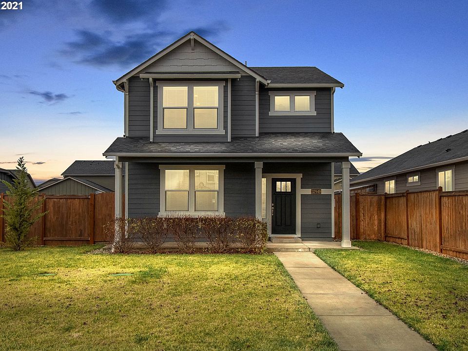Beautiful and cozy two-story home located in the charming town of Coburg. Some of the features include, open floor plan, quartz countertops, pantry, SS appliances & hardwood floors that expand into the dining and living room. Spacious master bedroom with walk in closet. Enjoy the small town feel of Coburg while being near everything you need. Home has a large 3 car garage, fully fenced & landscaped W/sprinklers. A beautiful park is right across the street.