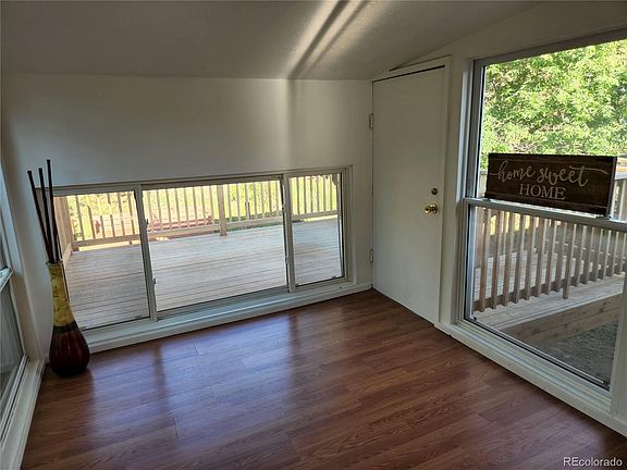 ***NEW***Carpet & fresh neutral paint throughout. PLUS NEW LIGHTING FIXTURES IN THE KITCHEN. IF YOUVE SEEN IT BEFORE-SEE IT AGAIN! This fantastic bi-level home opens to a welcoming landing, surveying both main living areas of this home. You will find stunning hardwood floors of the open living room with Pikes Peak views to the West. This room flows into the oversized, tile, eat-in kitchen. The kitchen offers a newer range/oven w/ glass top, dishwasher, refrigerator, and a garbage disposal. The kitchen opens to a bonus sun room. This room can be used as a formal dining room, office, or sitting area. It offers a walk-out to a beautiful deck overlooking the rear yard. The main level also features 2 lg bedrooms; 1 finished with carpet and mirrored closet doors, and the second with hardwood floors and floating shelves. The main level also hosts a tiled full bathroom between the bedrooms, and a closet conveniently located at the top of the stairs. The home has a whole house fan between the upper bedrooms and living room to provide cooling to the home.The lower level features a enormous family room with a gas fireplace, brick surround and hearth as it's centerpiece. This level has 2 additional bedrooms. The first is a non-conforming bedroom, as it directly accesses the laundry room and utility room. If not used as a bedroom, it would make a fantastic office or hobby room, and does provide a closet. The second bedroom offers a fantastic knee wall with shelf, perfect for displaying collectibles, toys, or books. This garden level basement also features another full bathroom with a glass enclosure, as well as storage under the stairs. The 23 x 18 2-car gar, w/opener, workbench, built-in shelves,& an included second refrigerator. The garage also walks out to the fully fenced rear yard. The backyard has a raised deck, a platform sitting area with built-in bench, as well as a shed and under sunroom storage area. The yard offers several mature trees, providing shade & privacy.