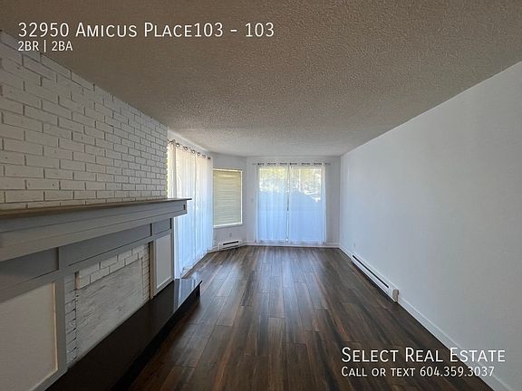 Address: 103 - 32950 Amicus Place Date Available: May 1, 2025 Fully renovated condo in the heart of Abbotsford just off of South Fraser Way. This beautiful home features a galley kitchen with newer stainless steel appliances. A lovely dinning space as well as a large living room with two sliding glass doors onto the corner unit wrap around balcony. This unit features a lovely main bathroom that has been updated with modern finishes as well as a half bath en-suite. There are two large bedrooms in this unit with plenty of room for large beds.There is laundry just down the hall as well as a storage unit, and underground parking spot. Lease Details Lease duration: 1 Year Deposit: Months Rent. Pet Deposit: Months Rent. No Smoking Property Details Bed: 2 Bath: 1.5 SQFT: 863 Pet Details Pets(Yes/No): No Exterior Details BBQs allowed(yes/no): No Parking type and how many: 1 Underground Yard Usage: No Yard fully fenced: NA Shed Or Shop Usage: No Appliances Included Fridge: Yes Range: Yes Dishwasher: Yes Microwave: Yes Washer/Dryer: Yes Shared Laundry: Yes Pay Laundry: Yes Fireplace: No Air conditioner: No Standalone freezer: No Utilities Gas: NA Hydro: 100% Tenant Internet/Cable: 100% Tenant Water, Sewer, Garbage: Included Utility Type Heat Source: Electric Baseboard Septic/Sewer: Sewer Water Source: City Tenant Responsible for Septic pumping: NA Strata Age Restriction: No Storage Locker: Yes Move-in/out Fee: $25.00 Move in Scheduling: NA