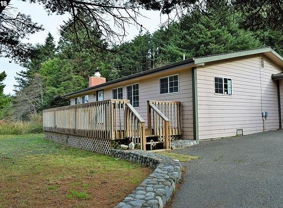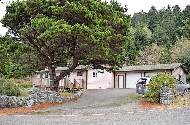 PRICE REDUCED! Close to beaches! 2 bedrooms, a den, living room w/fireplace, dining area and 2 full bathrooms. 2 washer/dryer hookups and 2 water heaters. Visit w/family and friends in the living/dining room while preparing meals in the large kitchen. Front deck, front/back yards, storage sheds. The best part may be the ENORMOUS attached garage w/benches! Nearby Rogue River & Gold Beach