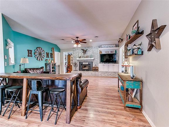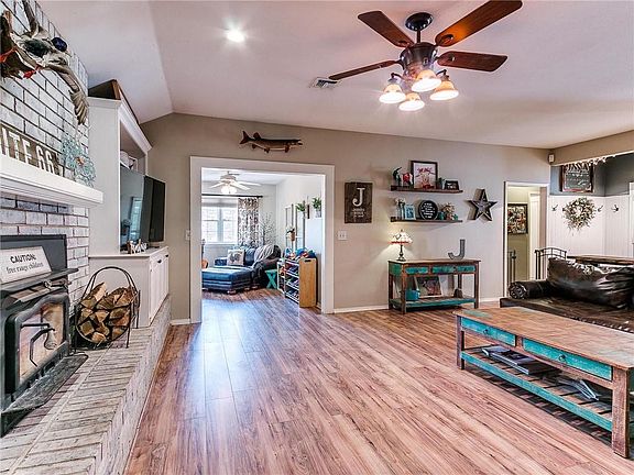 Head out where the stars shine a little brighter, and you will find this amazing Wellston ranch. With 4.18 acres and more features than you can list... this property is an absolute unicorn! Features to note: screened in porch, outdoor entertaining area with composite decking, play set, 2 fire pits, target shooting backstop for rifles, pistols & arrows, 10 person underground storm shelter, goat house, chicken coop with automatic door, 30x60 metal outbuilding w/ concrete slab & electric (20x30 of the building is a shop with a roll up door. 30x30 is covered parking for up to three vehicles - cars/boats/tractors), 12x18 storage building for mower and yard tools, stocked pond w/ fishing dock, fully fenced & cross fenced, animal friendly fencing, electric gate w/ 2 car remotes & key pad entrance for guests, RV hookups. And to top all that off, the home is fabulous! Multiple flexible living areas, open flowing floor plan, huge pantry, tons of storage, and an amazing fireplace! What a dream!