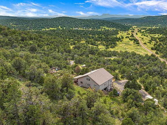 This Timber Frame Home boasts exceptional craftsmanship and is situated on nearly 20 acres of land that shares a border with National Forest, providing stunning views of the mountains, sunsets, and nature. The home has on-grid electric service and is equipped with all the modern amenities you would expect. It features two master suites with two baths, a beautifully designed kitchen, living, and dining area with large windows that capture the breathtaking views. The home is equipped with radiant in-floor heat, and an air conditioning system with four zones, ensuring comfort in every room. The double-deep garage is also heated and air-conditioned, making it an excellent space for storage or work. Additionally, there is a loft that can be used as a sleeping or recreation area, a screened-in porch, decks, and more. This property is located within the Sierra Verde Ranch community, and the small annual fee allows for road maintenance and provides access to both community wells, one of which is located on Anvil Rock Rd. Overall, this property offers a luxurious and peaceful retreat surrounded by natural beauty and modern amenities.