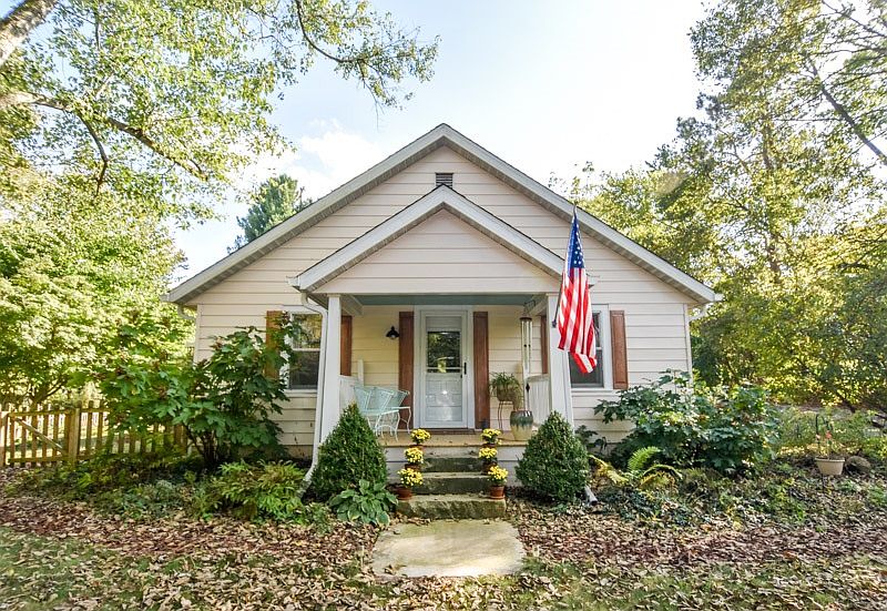 Adorable cottage sitting on an idyllic 1.03-acre lot. This ideal southeast location is convenient to everything Bloomington has to offer. A drive of only a few minutes gets you to campus, downtown, shopping, restaurants, theatres and the new hospital site. This picturesque property is beautifully landscaped with an abundance of flowers, trees and bushes that attracts birds and wildlife of all kinds. The original 2 bedroom home, currently being used as a 1 BR, has a large eat-in country kitchen and a separate dining room that has been used as a bedroom in the past and only needs the addition of an attached Armoire to serve as the 2nd BR again. The current bedroom was originally 2 BR???s, so is a large and comfortable space. A local reputable builder has been consulted and it was determined that it would be possible to build up, creating 2 more BR???s and another bath on the second level. So, while the home is perfect now for one person or a couple, with a few changes it could also accommodate a growing family. Features of this charming home include the original, beautifully finished pine wood floors, original cabinets in the kitchen, arched doorway between the large living room and the dining room, claw-foot tub in bathroom, and a unique built-in window bird feeder acting as your own private aviary. Outdoor living can be enjoyed in this nature lover???s paradise, with walks around the property and sitting on the front and back covered porches. There is a detached 2-car garage and plenty of parking space in the turn around driveway. This is also a perfect building site and you could live in the cottage while building your dream home here. This is an opportunity to purchase a very special property, in a desirable location, that is delightful as it is, but also has so many possibilities! Call to arrange for your private showing.