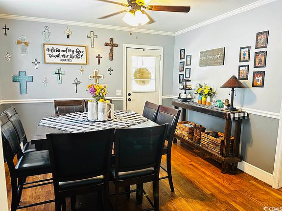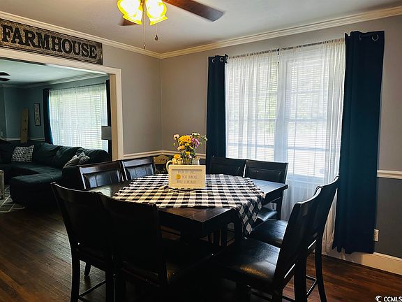 Welcome to this beautiful 3 bedroom 1.5 bath traditional brick home in downtown Hemingway. Starting off in the formal dining room and opening up into the spacious living area with crown molding and chair rail, there is plenty of room for a family dinner around the table and movie night on the sofa. The kitchen features new butcher block countertops, farmhouse style sink and new stainless steel appliances. Through the kitchen is the laundry room with extra space for an office/work area. The two guest bedrooms are conjoined with a Jack and Jill half bath and both include spacious closets. The owners suite includes double closets as well as a built-in desk for At-Home work or studying. The full bath off the hallway has a beautiful lit mirror as well as a new walk-in shower & linen closet. This home features all original wood floors throughout as well as tile in the kitchen and main bathroom and vinyl in the half bath. Walking outside from the laundry room feature double doors onto a 10'x12' deck to enjoy the weather. A 16'x10’ shed is included with the property. This home is move in ready & is waiting for its new owners.