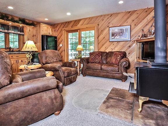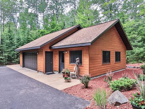 Beautiful home, gorgeous landscaping, enormous garage... What more could you ask for? This QUALITY off water home just outside of Eagle River is up for the taking & priced to sell. Sitting on just over 3.5 acres this property is extensively landscaped w/numerous walking trails running through wooded parcel. The superior craftsmanship of the home is apparent from every room, it is approx.. 1,472 finished sq. ft. w/a 660 sq. ft. unfinished basement. 2 Bds & 1 BA are located on the main floor, as is the open concept kitchen/living room boasting a toasty wood stove & a walkout patio. Now the part the men are interested in- the garage. The 3 car detached garage has a heated workshop portion & there is a water spout going into the 2- car portion where there is an upper level for additional storage. The 3rd stall is where one can park your motorized toys. Other notables are the circular black top driveway, woodshed, & storage shed. Close to chain and many lakes and snowmobile trail.