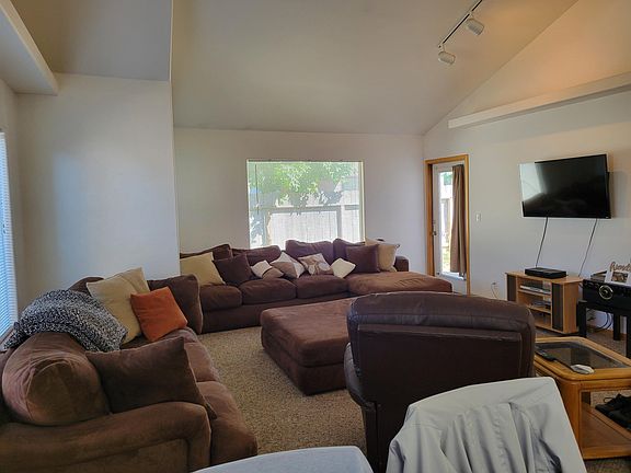 Open & bright townhouse located in sunny Fortuna. Spacious floor plan with over 1,500 sq feet includes 3 beds, 2 baths, and a large bonus room above the attached garage perfect for your additional needs. Primary bedroom and bath are located on the first floor. Kitchen is open to the dining and living room. The living room is warm & cozy with high vaulted ceilings, display shelving, and access to the backyard and patio. Garage has washer and dryer hookups, auto opener, storage, and direct entry to the home. Upstairs hallway overlooks the entry & living room for a nice airy touch. Lots of windows and natural light in this comfortable home. Can be a great starter home or one to downsize to. Appliances included. Come tour this delightful townhouse today!