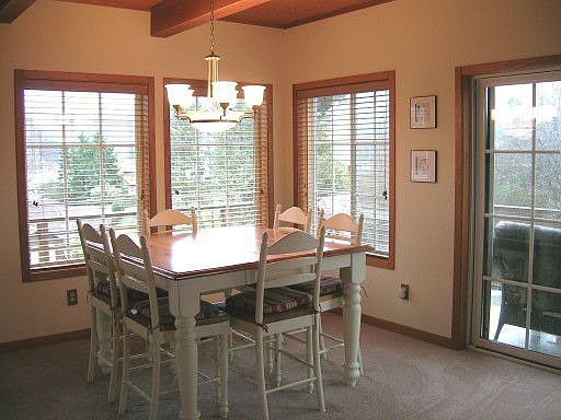 This home features a beautiful cottage by the lake design, with an open floor plan and beautiful wood details throughout including pine beamed ceiling. A view of Devils lake from every window! Tiled kitchen and bathrooms, granite fireplace. Lots of light. Neighborhood Description This neighborhood is half second home owners, and half full time owners. It is very quiet. No weekly rental properties. Few children. It consists of well landscaped yards, and mature old growth trees. Of course everywhere you go you see the lake!