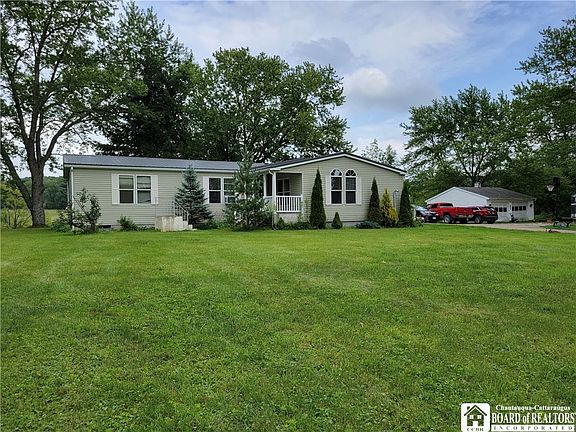 Country living outside of Findley Lake. 2001 Owl Home with a full basement and Superior Walls on 4.8 acres with a pond and room to garden. Move in ready home with high ceilings, family room with a pellet stove off of the kitchen. Kitchen has loads of storge with a breakfast bar and a separate dining/living room area. Master Bedroom and bath are very spacious with a garden tub, separate shower, double sinks and a full walk-in closet. Two good-sized additional bedrooms and full bathroom. Mud room with laundry on first floor. Basement is a blank slate to create extra living space as it has high ceilings. This location is perfect if you ski, golf or like the water as you are 2 miles from the quaint village of Findley Lake and 12 minutes from the ski slopes at Peek'n Peak Ski and Golf Resort.